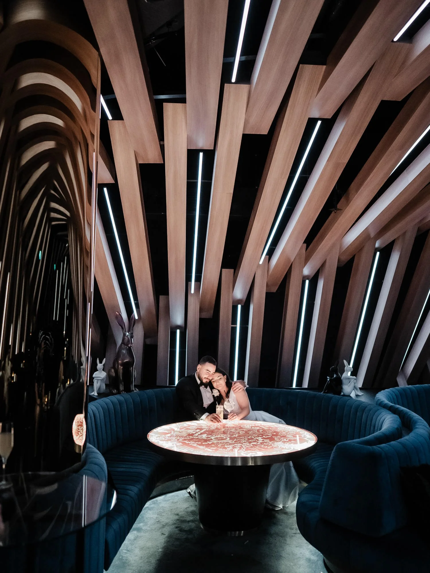 The best portraits come from places that are already part of your day. Maybe it’s a bar, a drink with your wedding party, then a few minutes for just the two of you. Just enough to connect, soak it in, and make photos that feel as good as they look before heading straight back to the party in time for cocktail hour.